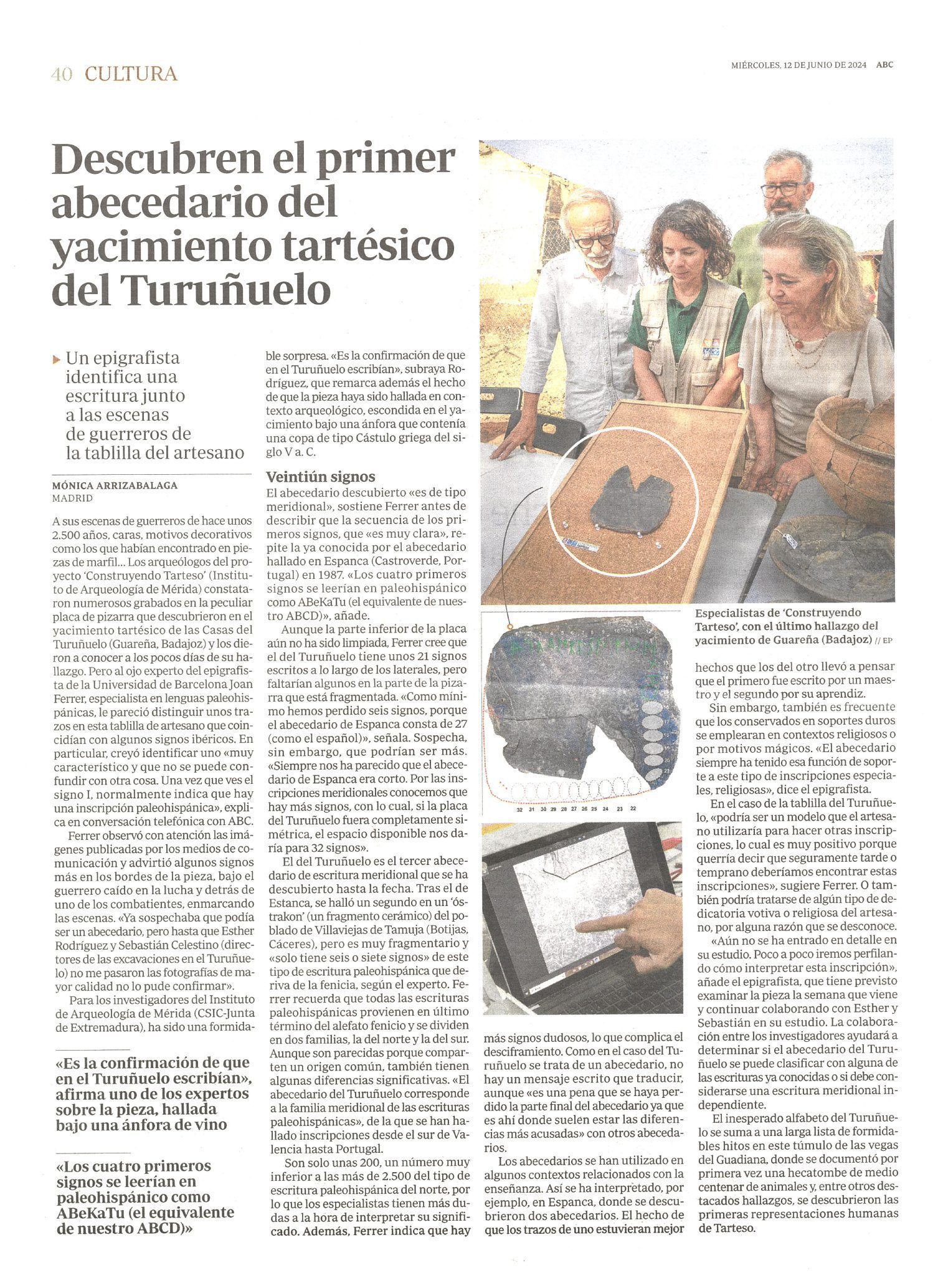 ABC | Descubren el primer abecedario del yacimiento tartésico del Turuñuelo