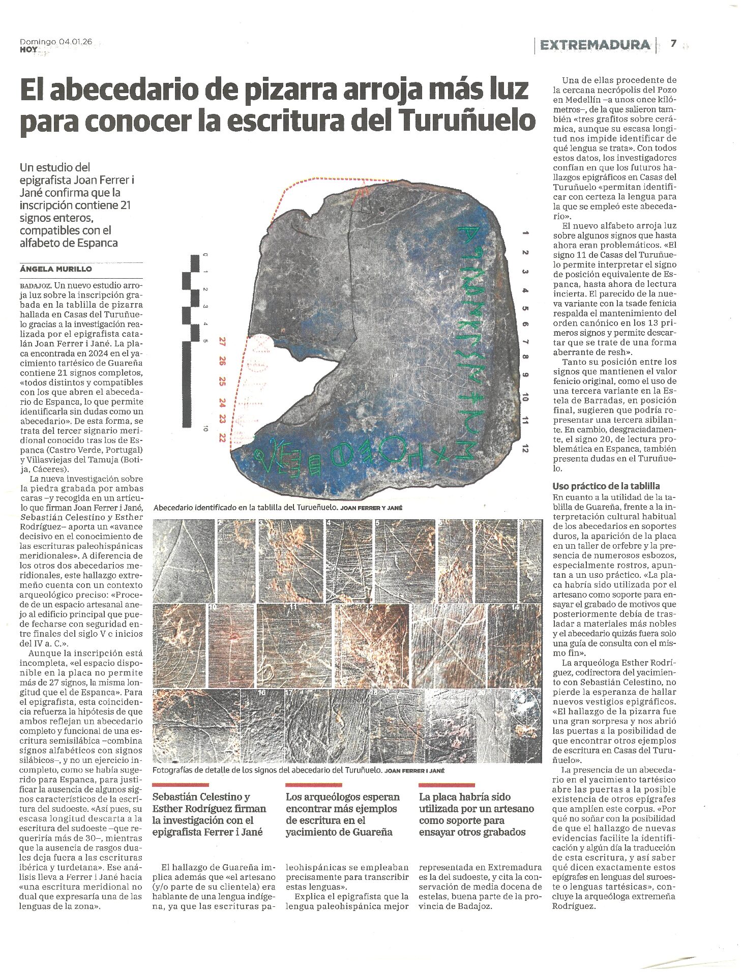 HOY | El abecedario de pizarra arroja más luz para conocer la escritura del Turuñuelo